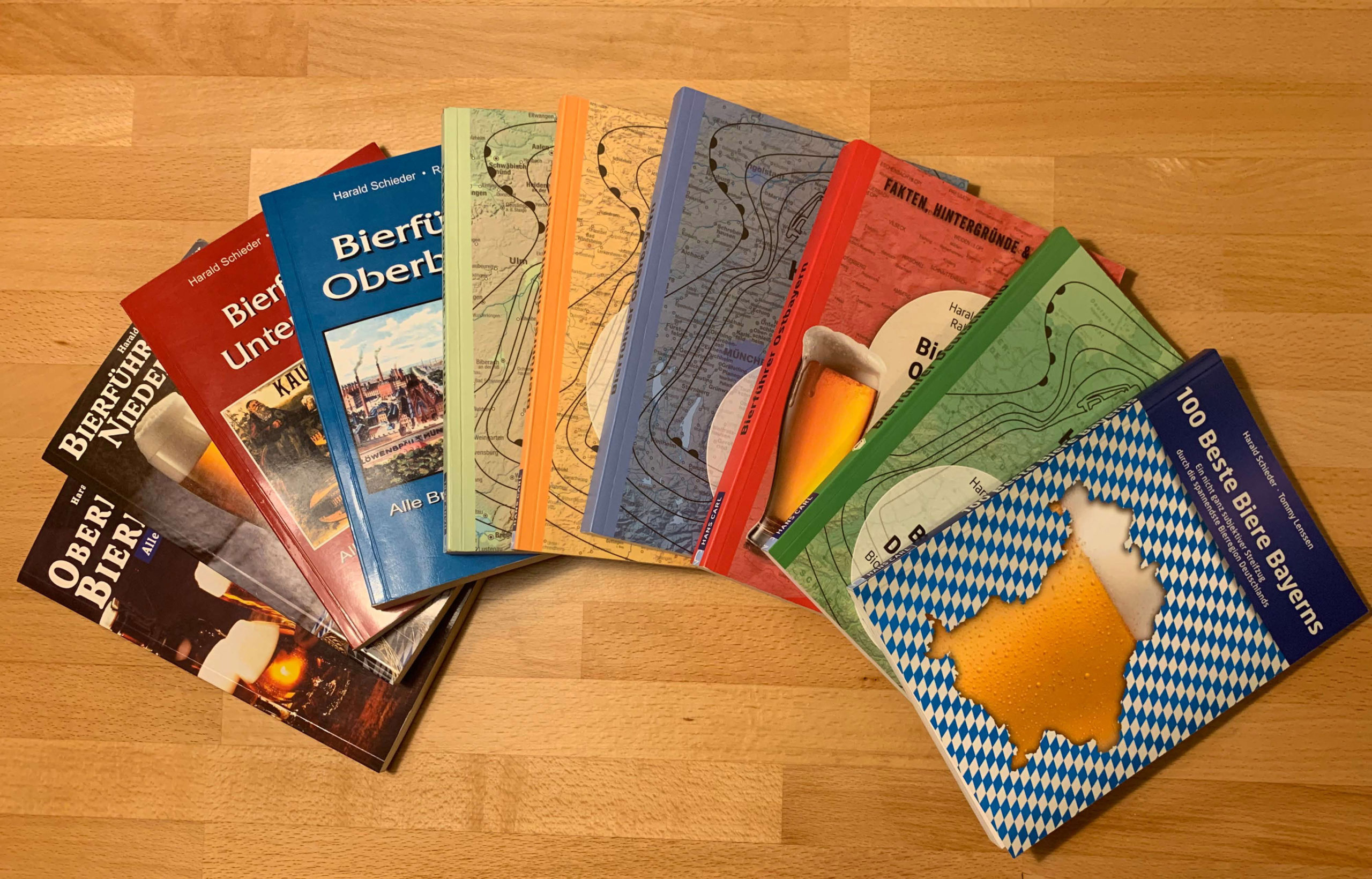 Nach einem kurzen Intermezzo mit zwei erschienenen Büchern, dem ‚Bierführer Unterfranken‚ (3) und dem ‚Bierführer Oberbayern‚ (4) im Erlanger Specht Verlag wechselten wir zum renommierten Nürnberger Fachverlag Hans Carl.