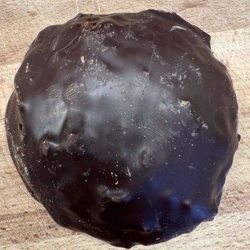 In der Nase dominieren die Haselnüsse, dann die Aprikosenmarmelade, Datteln und Marzipan. Schoki steht nicht auf der Liste, erste Assoziation ist allerdings extrem hochprozentige Bitterschokolade, nicht süß, dann aber ein eher ungewöhnlicher Geschmacksverlauf, der evtl. auch ein Dattelprodukt sein könnte. Ich werde da mal nachhaken. Am Gaumen deutliche Süße, irgendwie schon schokoladig, aber deutlicher noch die Haselnüsse und die Dattelsüße, aber irgendeine Bittere im Abgang, die am Gaumen bleibt. Tolle Idee, tolle Rohstoffe, Handarbeit (kleine Nussschalenstückchen können schon mal vorkommen). Eher konfekt- früchtebrotartig, die Oblate aus Maismehl und Stärke eher zäh und unten auch noch dunkel bestrichen. Alles in allem eine schöne, natürliche Umsetzung mit kleinen Schwächen in der B-Note, der Klassikerfan wird typische Würze vermissen, aber unbedingt probierenswert. Danke für die Spende an Steffi. ![]()