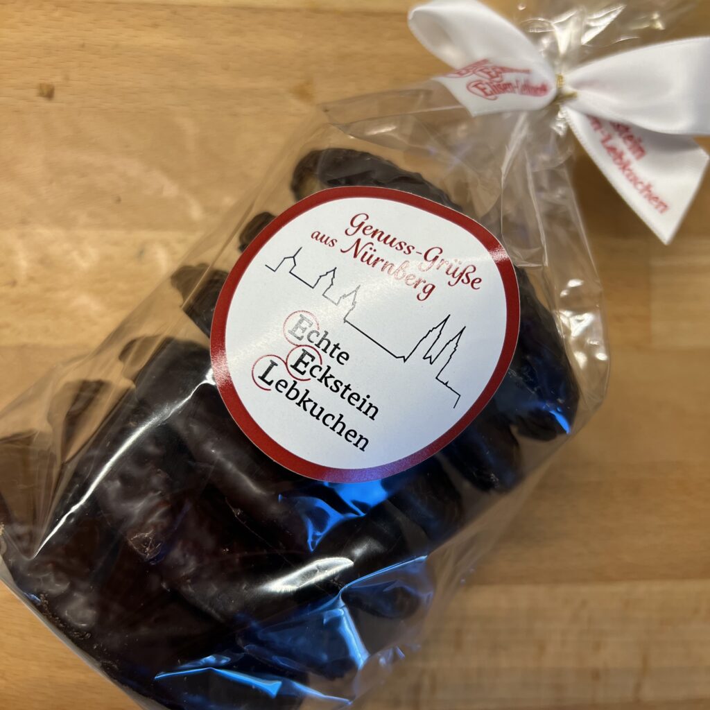Die Firma Eckstein, schon vor Jahren vom Stadtpark in ein Gewerbegebiet in Ziegelstein gezogen, ist eine (fast) rein vorweihnachtlich produzierende Lebküchnerei. Hergestellt werden noch einige andere vorweihnachtliche Produkte, aber eben nur um die Weihnachtszeit, außer es ist mal noch Bedarf für den Online-Shop. Den gibt es nämlich auch, wer die Lebkuchen jedoch direkt vor Ort abholt, erhält 10% Rabatt.