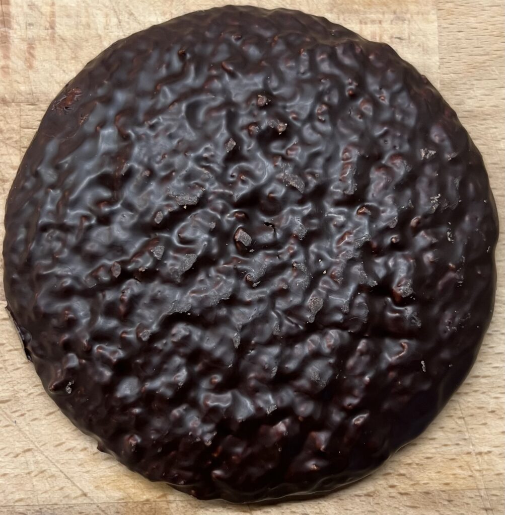 Vor einigen Jahren schon mal getestet, hatte ich sie in guter Erinnerung. In der aktuellen Verkostung kamen sie uns jedoch etwas brav vor. Sehr ordentlich die 68% Kakao in der Zartbitterschoko, das schmeckt richtig schokoladig, könnte allerdings noch etwas üppiger aufgetragen sein.