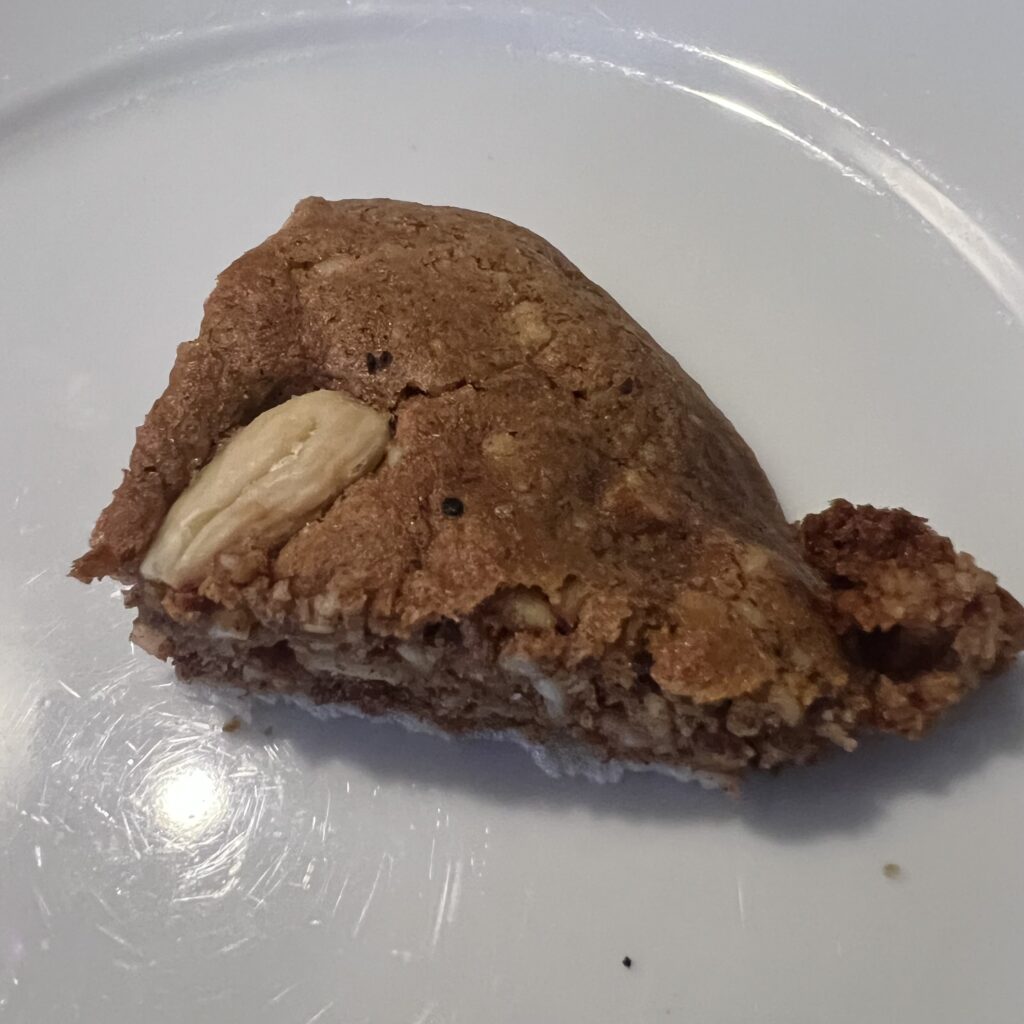 Fazit: Ein gut balancierter Lebkuchen, der nicht von den Einzelaromen, sondern von der Fokussierung auf die Nüsse, hier im Speziellen vor allem auf die Mandeln lebt.