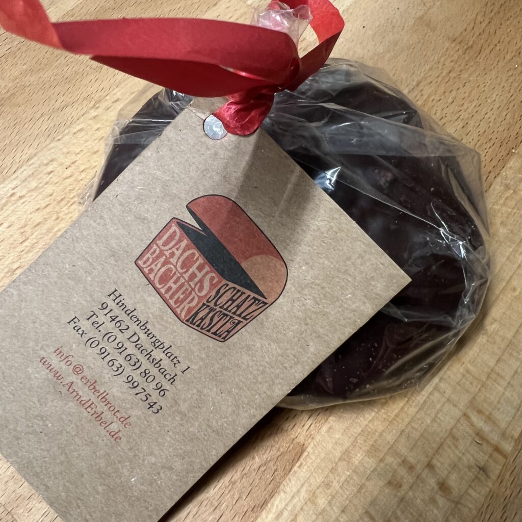 Heute noch ein Lebkuchen aus dem fernen Dachsbach. Nein, grob zwischen Neustadt/Aisch und Höchstadt/Aisch bäckt seit vielen Generationen ein heute als einer der individuellsten und anspruchsvollsten Bäcker Deutschlands ausgezeichneter Verrückter, der bei Qualität und Rohstoffen alles auf die Spitze treibt. Und noch darüber hinaus.